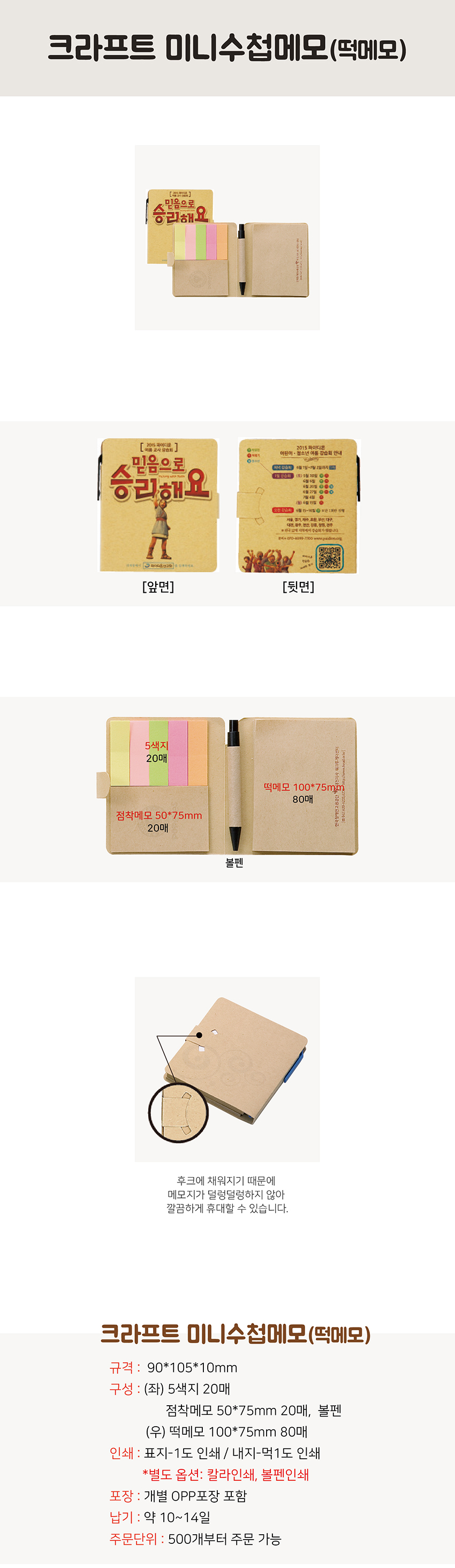 | 구성품 | 5색지, 점착메모 50*75 각 20매, 떡메모100*75 80매 | 1박스입수량(변동가능) | - |