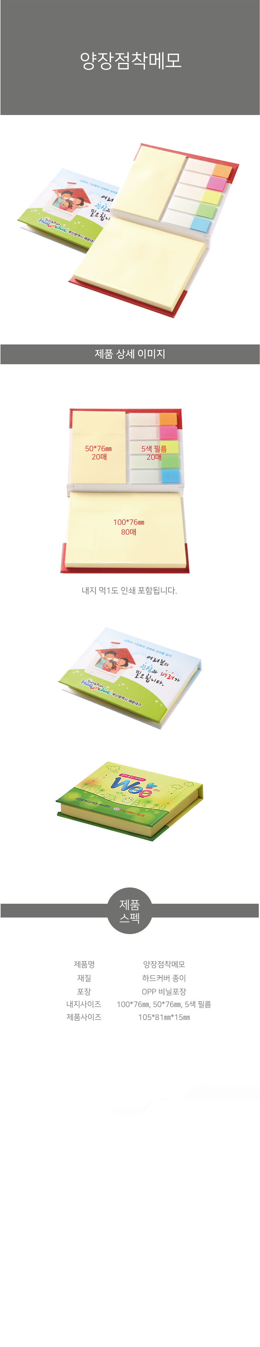 | 구성품 | 점착메모 100*75 80매, 50*75, 5색플래그 20매 | 1박스입수량(변동가능) | - |