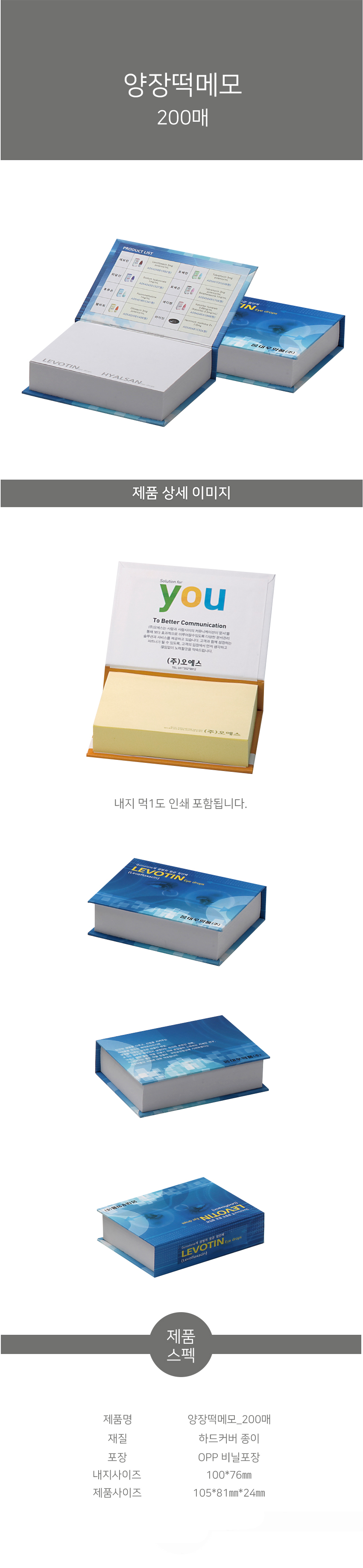 | 구성품 | 떡메모100*75 200매 | 1박스입수량(변동가능) | - |