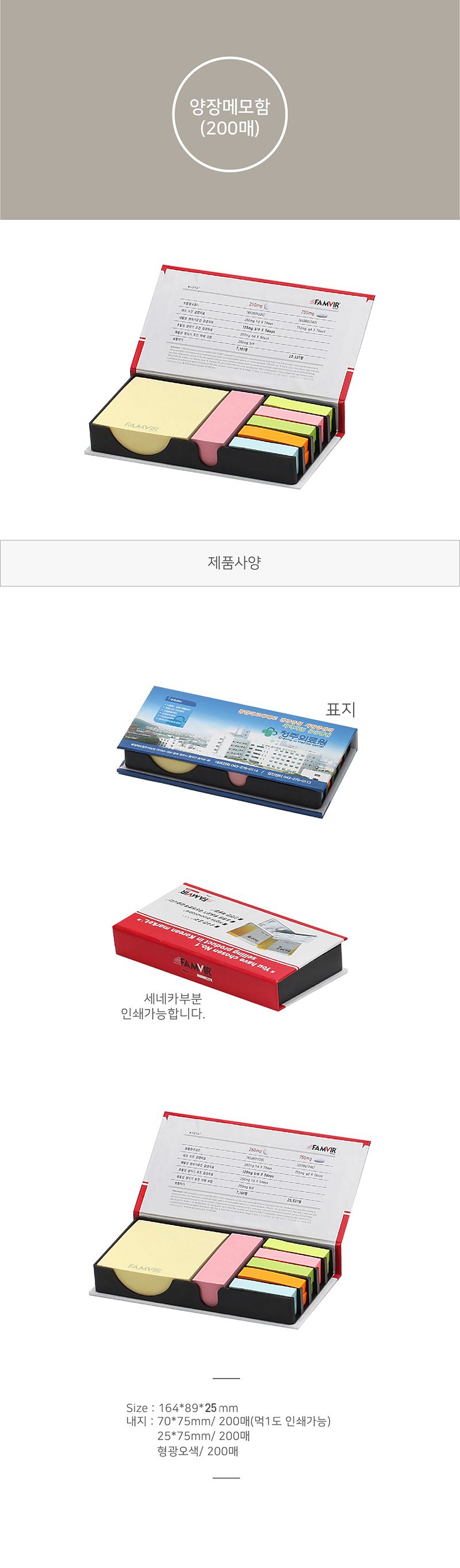 | 구성품 | 점착메모70*75, 25*75,5색지 각200매 | 1박스입수량(변동가능) | 약 180개입 |