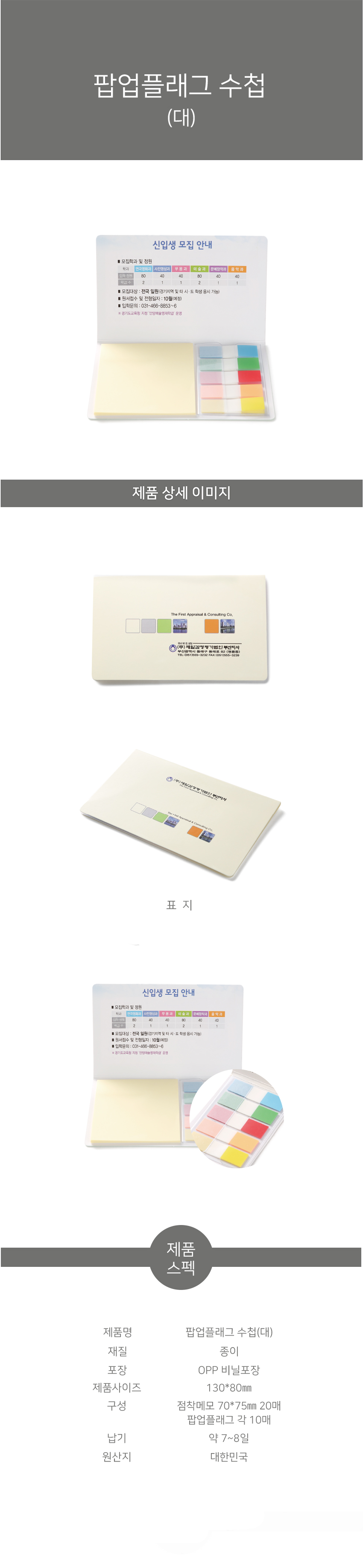 | 구성품 | 점착메모 70*75 20매, 팝업5색 10매 | 1박스입수량(변동가능) | 1000개 |