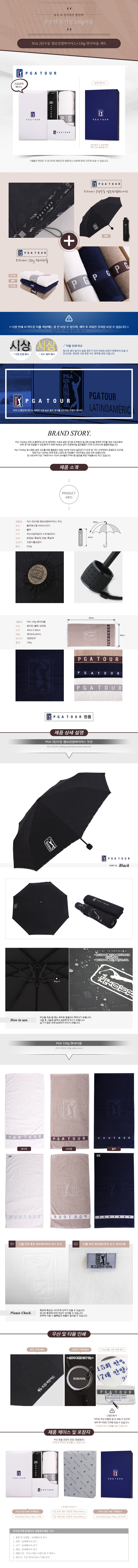 PGA 3단수동 엠보선염+130g 면사타올 우산선물세트