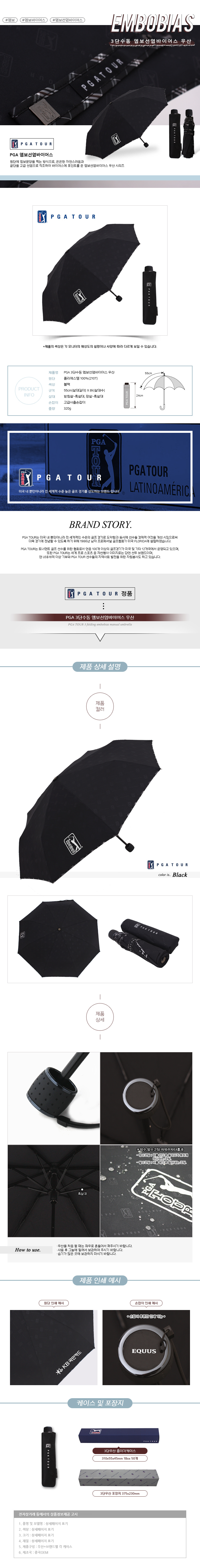 PGA 3단수동 엠보선염바이어스우산